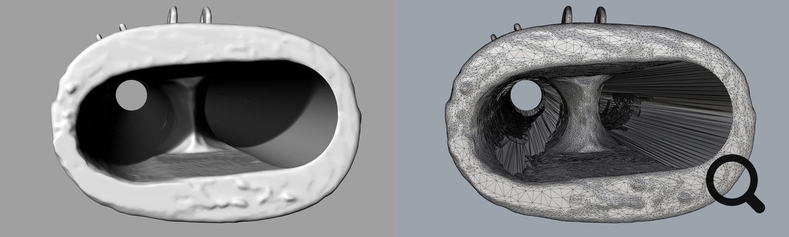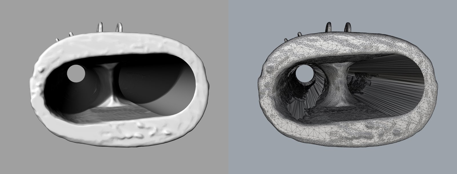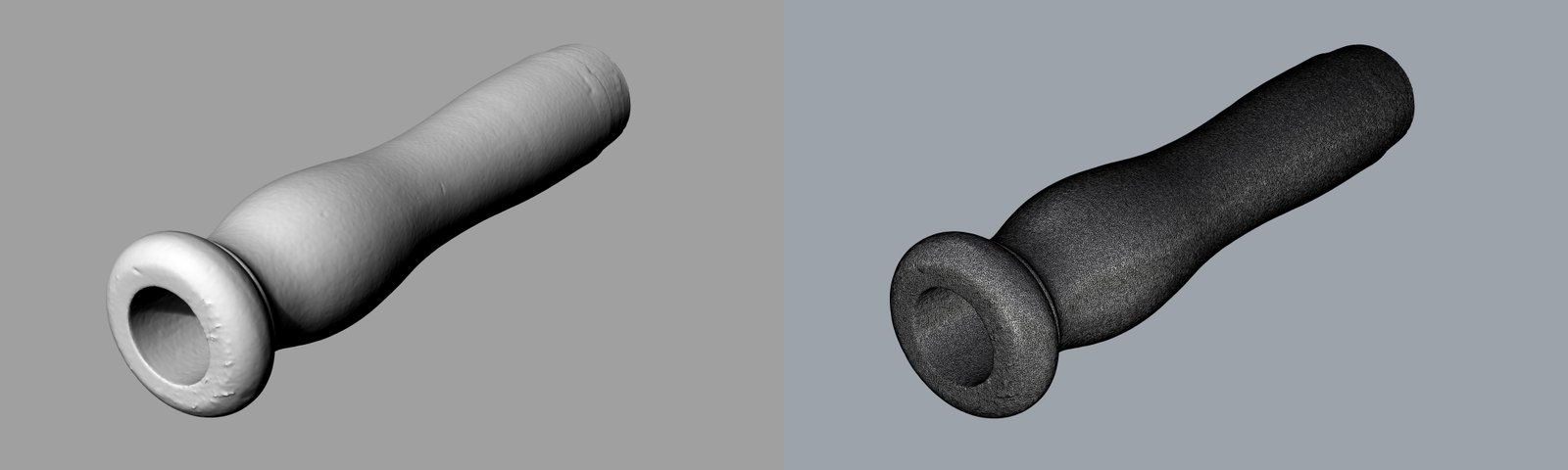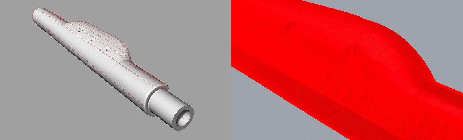 This project has been a great opportunity to simultaneously test the current limits and scope of both approaches and to compare their results, both in the 3D-modelling phase and the practical printed objects. Furthermore, we have used this opportunity to test another never-before-tackled question when it comes to wind instrument reconstruction: the bore ovality. Most wind instruments are built by putting wooden pieces on a lathe and drilling circular bores. Yet even the best seasoned wood will shrink and deform over time and most historical surviving instruments are slightly deformed versions of the way they were centuries ago. This can be mostly appreciated in bent inner axis and slightly oval bores which cannot be reproduced by traditional tools. This has led to an unsettled and borderline philosophical discussion when it comes to making copies of museum instruments, as it is basically not possible to copy them in their current state. In order to scientifically test the influence of the oval deformation, we have produced two sets of both instruments, one with the inner bores as they are now (oval) and one where the bores have been corrected to be circular to the maximum diameter at each point (which compensates for wood shrinkage and deformation). Since the exterior remains the same, players will be able to test (and even blind test) whether the circular or oval versions perform differently and give better- informed answers to this conundrum.