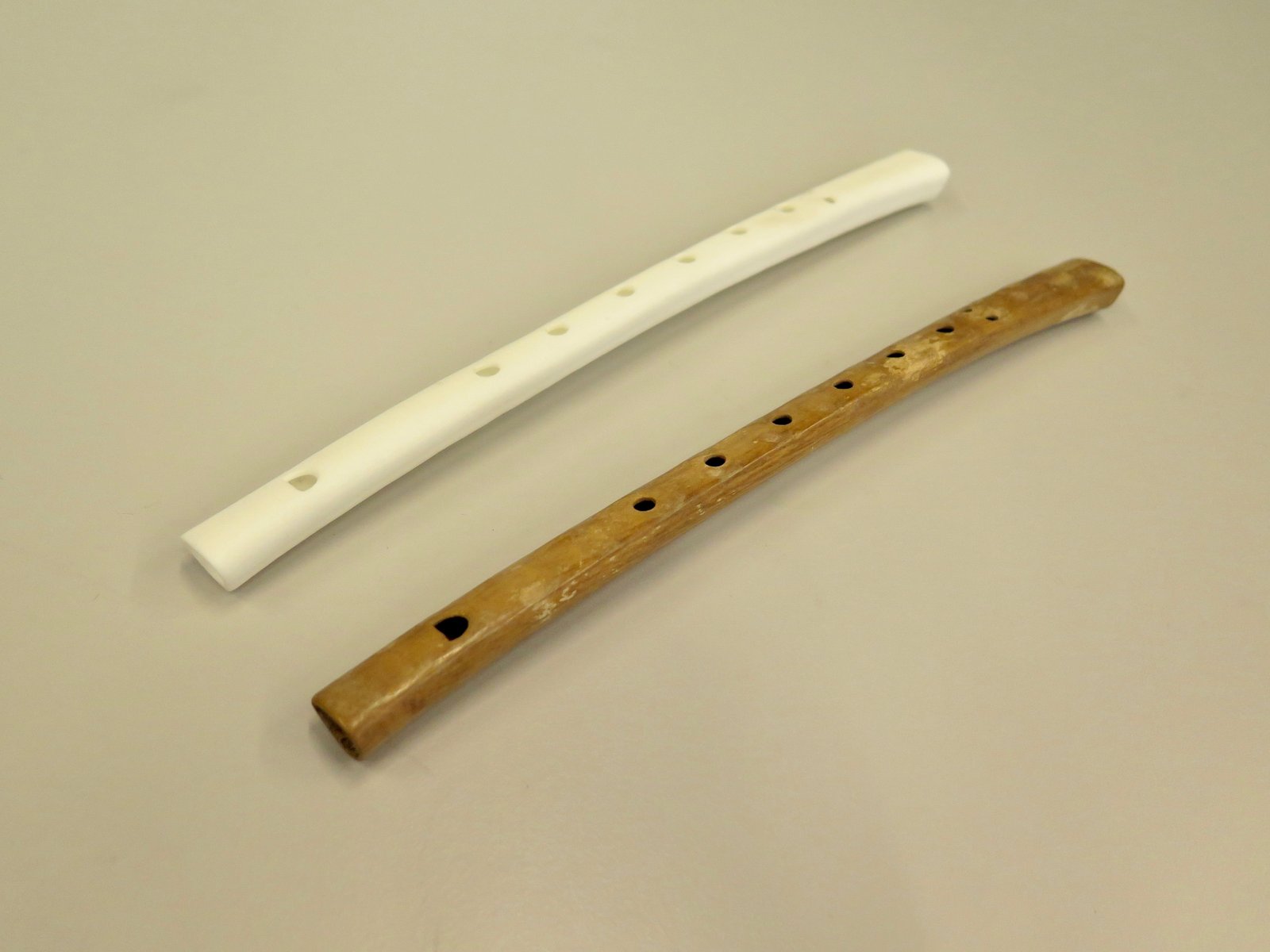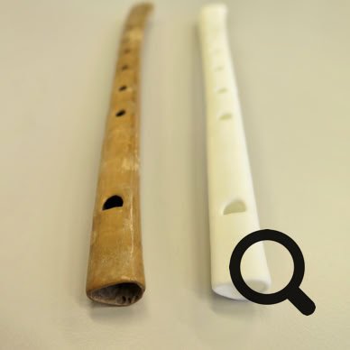 The flute was presumably a recorder, which wooden block was not preserved the way the bone was. By using 3D-modeling and 3D-printing we have reconstructed an hypothetical block in order to make the recorder playable again.